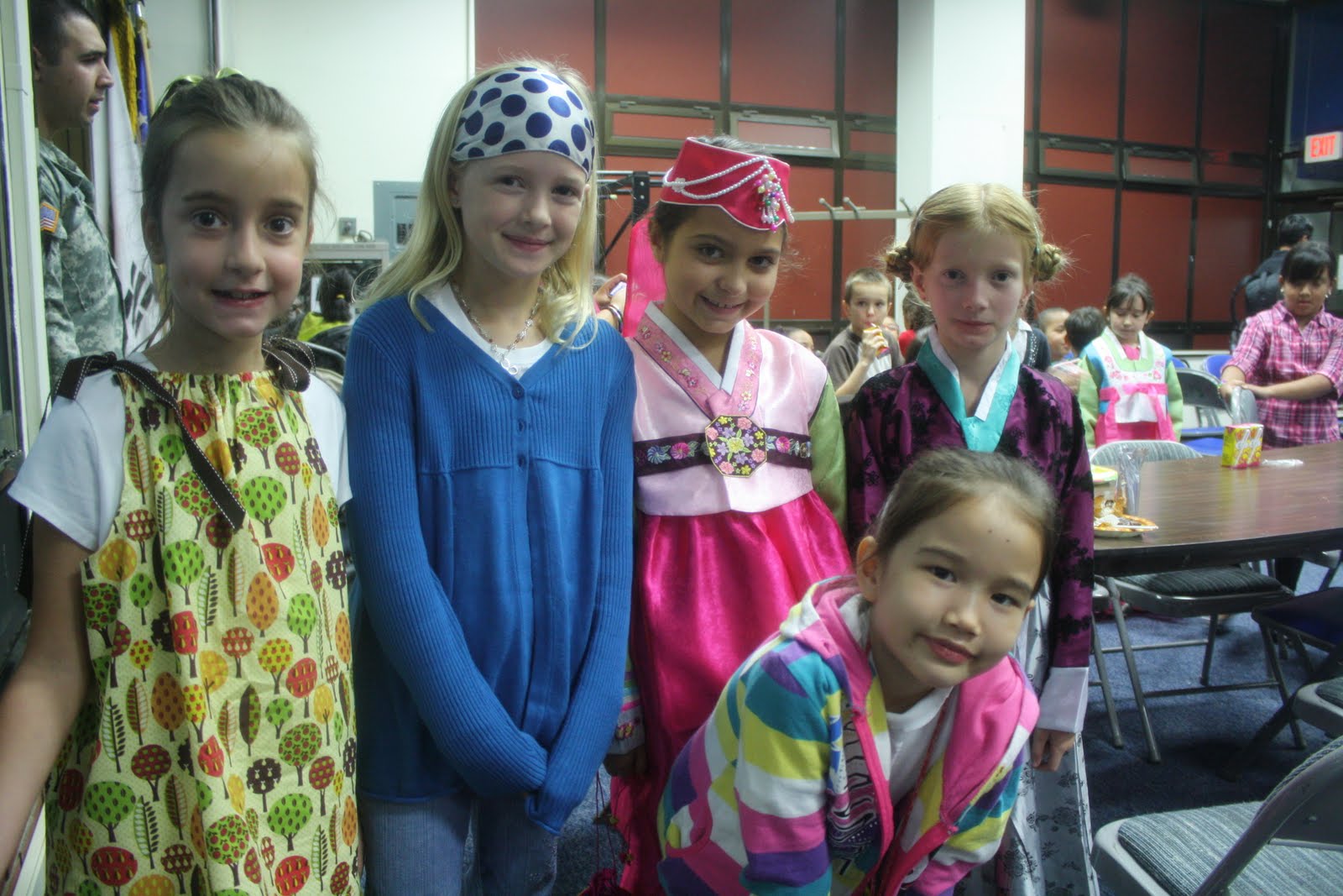 Tuesday Ben had a Chusok feast. Today was Madi's. We are stationed at an Army base so I always tell Ben and Madi they are extra special because they are Air Force kids going to an Army school....Germany they were Air Force at an Army school to. But in this picture...Madi's class has all these little Air Force girls and two of them have dads that work with Steve. So the Air Force sure stick together.